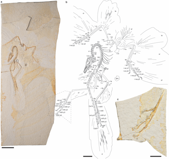 此次报道的芝加哥标本由菲尔德自然历史博物馆收藏于2022年,是目前发现体型最小的始祖鸟标本,只有近鸽子大小。这件标本不仅极为完整,大部分骨骼还保存较为立体,同时保存有罕见的软组织如皮肤、趾垫和羽毛等重要信息,为深入理解其形态信息与生态适应提供了独一无二的证据。