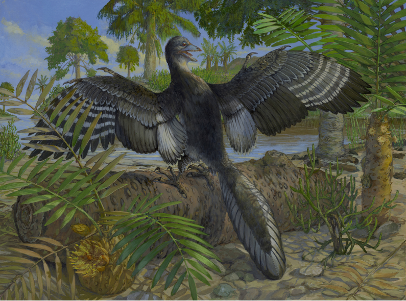 始祖鸟身披羽毛,兼具恐龙与鸟类的特征,对它的研究是人们理解鸟类起源,探寻恐龙如何向鸟类演化的重要依据。